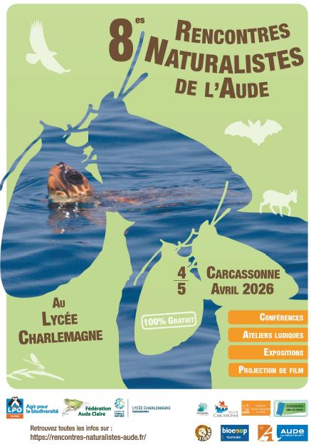 Depuis 2013, la Fédération Aude Claire, la Ligue de protection des oiseaux (LPO Aude) et le lycée agricole Charlemagne de Carcassonne organisent les Rencontres naturalistes de l'Aude. Soutenue par le Département de l'Aude, une 8e édition est proposée au grand public pour le week-end de Pâques, samedi 4 et dimanche 5 avril. Expositions, conférences, sorties nature, ateliers, stands associatifs, films... Une affiche très riche est proposée par les 3 partenaires organisateurs.
