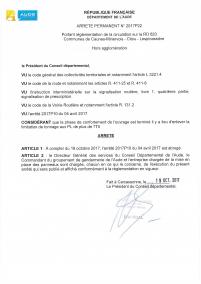 Arrêté permanent n° 2017P22 - RD 620 - Caunes Minervois - Citou - Lespinassière - Limitation de tonnage (58.84 Ko)